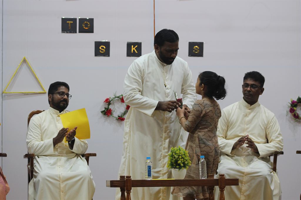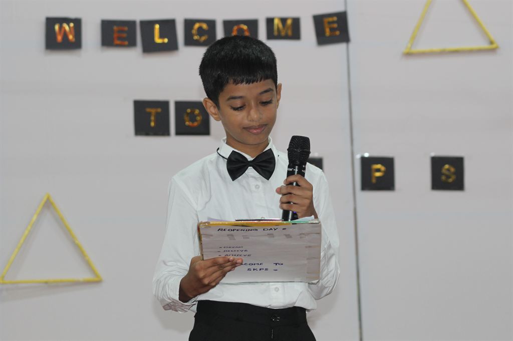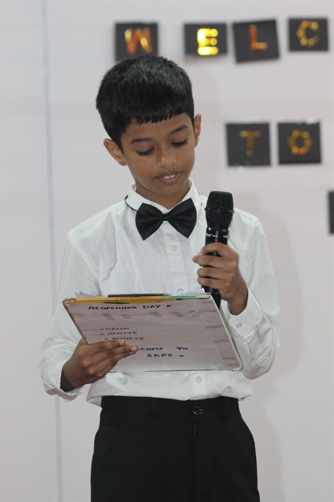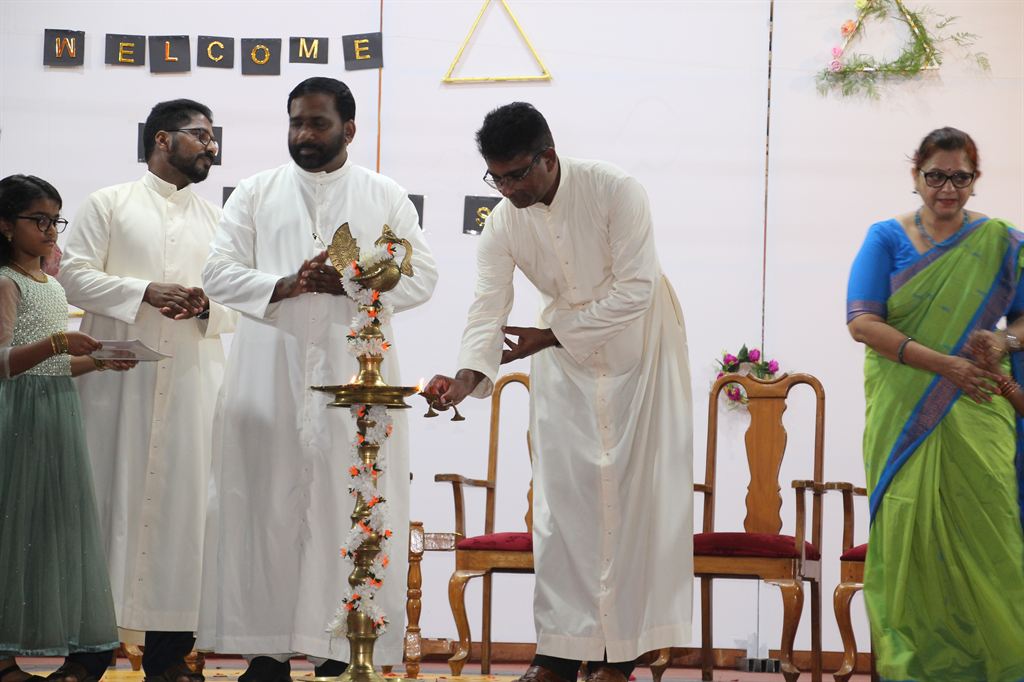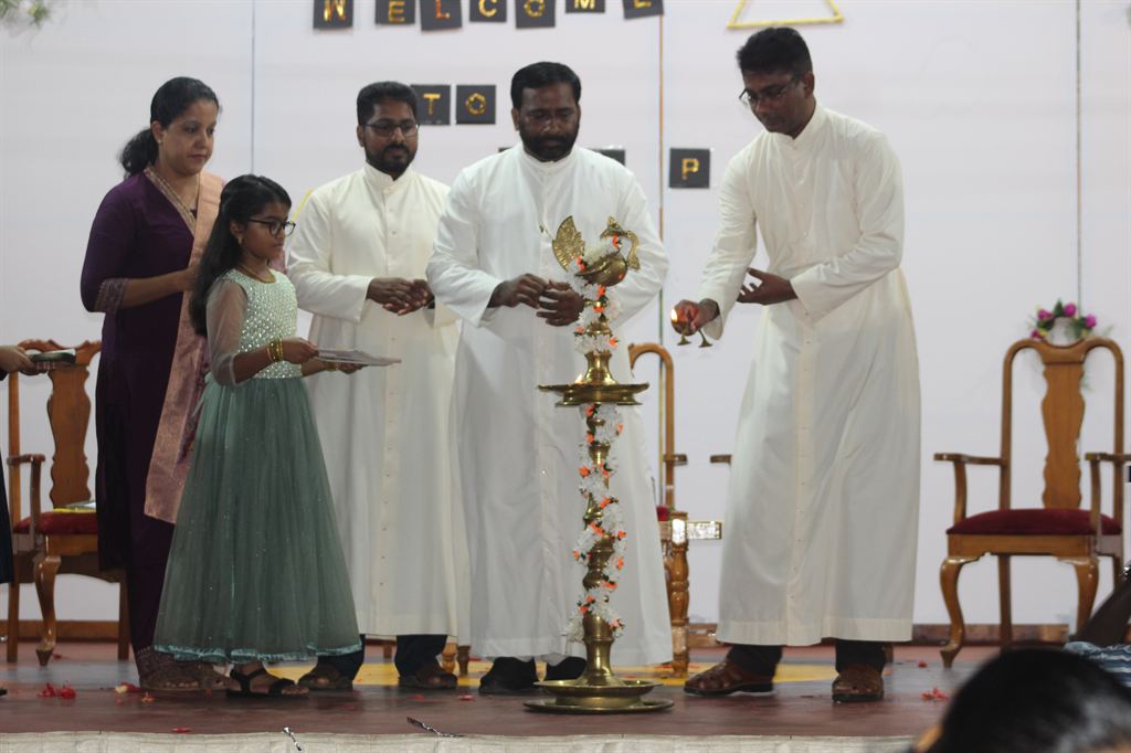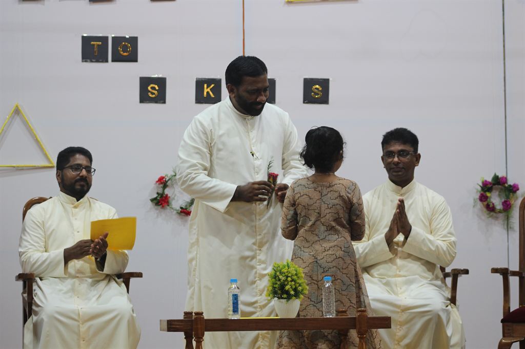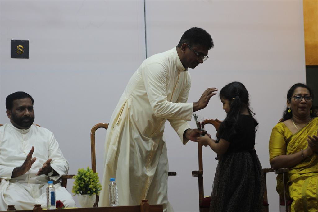 This was followed by an inspirational speech by Rev. Dr. Bino Cheriyil OSB, the Executive Director of the school. He warmly welcomed the students and acknowledged the dedicated efforts of the staff in preparing for the reopening.